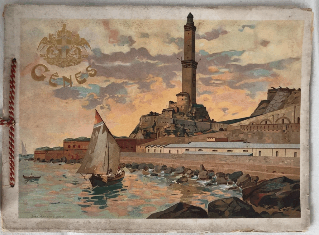 I’ve been in Genoa for two-and-a-half weeks now and have been wanting to dive into some history of the city and so have lazily looked for books that would provide a light overview, giving me a chance to dig deeper into specifics if needed. While doing so I got sidetracked with a century-plus-old, cord-bound book of photographs, first a somewhat raggedy one on Etsy and then I reverse-imaged to a much cleaner one on Ebay (both linked below). A little pricey but tempting as an artifact of my adoptive city. They are definitely not the history I’ve been searching for but are the aesthetic of that history.